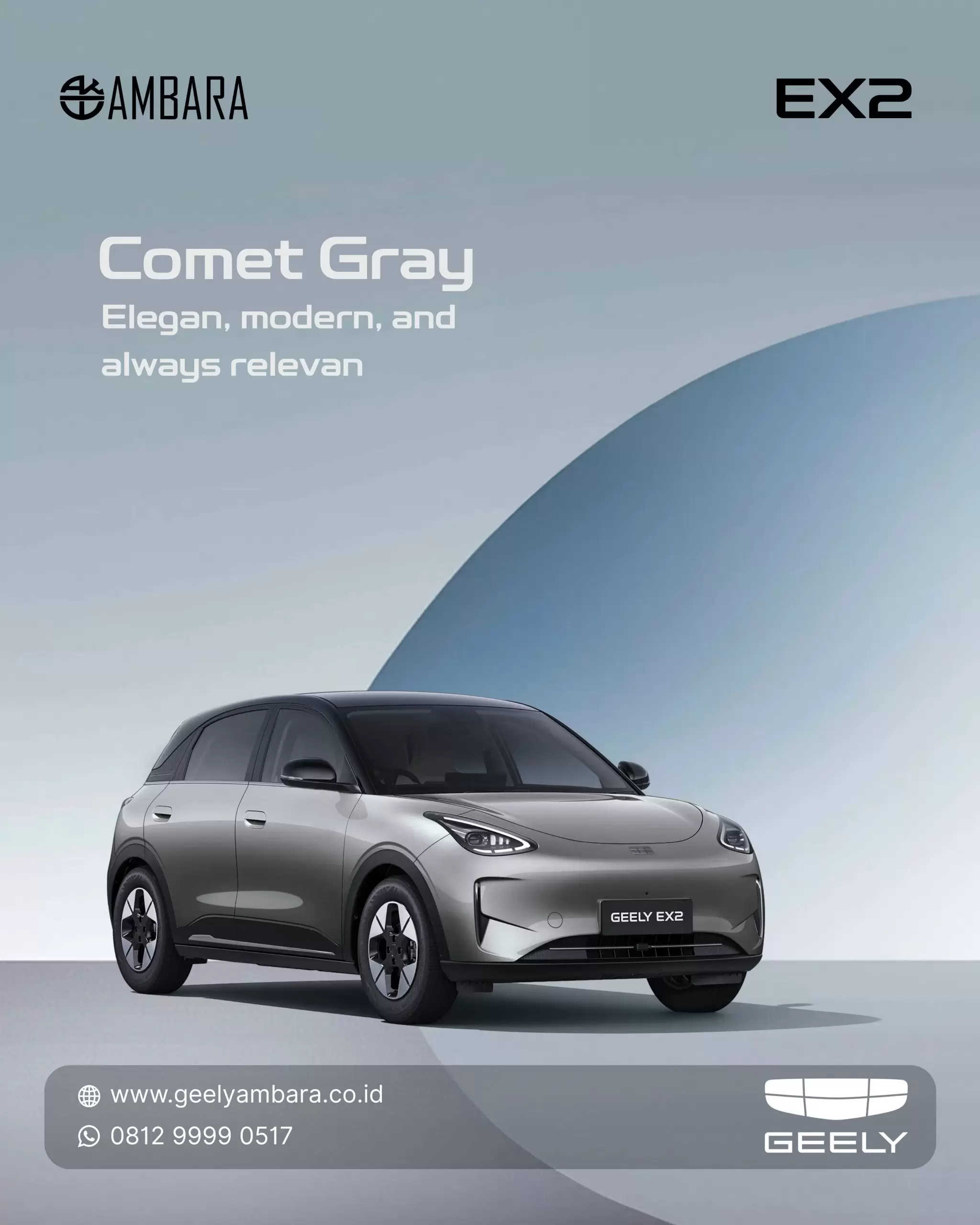 Geely EX2 dirancang sebagai mobil listrik yang benar-benar relevan untuk kebutuhan harian di perkotaan. Dimensinya ringkas sehingga mudah bermanuver dan parkir, namun tetap menawarkan ruang kabin yang nyaman untuk lima penumpang. Dengan penggerak roda belakang (RWD), Geely EX2 memberikan rasa berkendara yang lebih stabil dan menyenangkan dibandingkan kebanyakan EV di kelasnya. Ditambah jarak tempuh hingga sekitar 395 km (NEDC), EX2 siap menemani aktivitas dari pagi sampai malam tanpa rasa khawatir.
